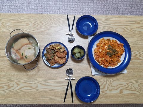 기특하고 대견하고. 동생이 좋아하는 로제파스타와 어묵탕 그리고 육원전, 깻잎전, 굴전 구워서