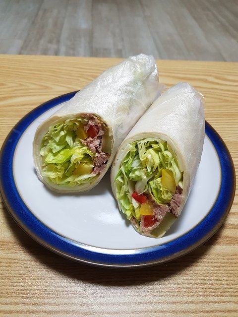 양상추가 어중간하게 남아서 참치 기름 꼭 짜고 안에 넣어서 말아보았어요.