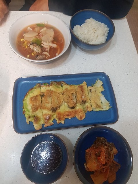 한식을 좋아하셔서. 전도 굽고 미더덕이랑 굴 넣은 해물된장찌개 끓이고