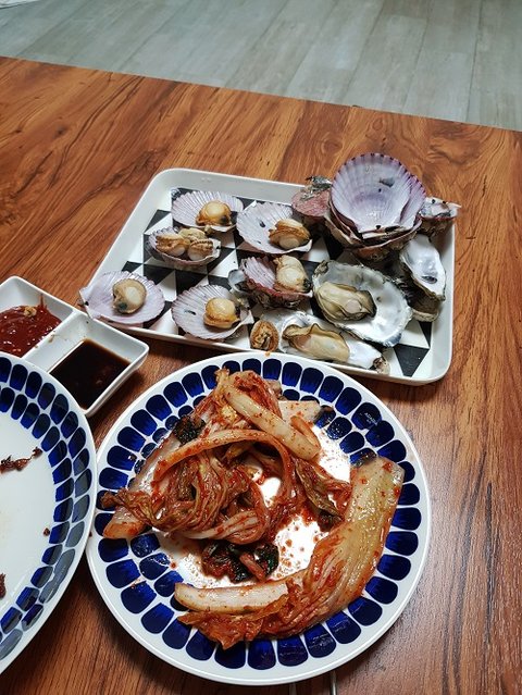 아버지가 굴이랑 가리비를 쪄먹자고 한자루씩 막 사오셔서
