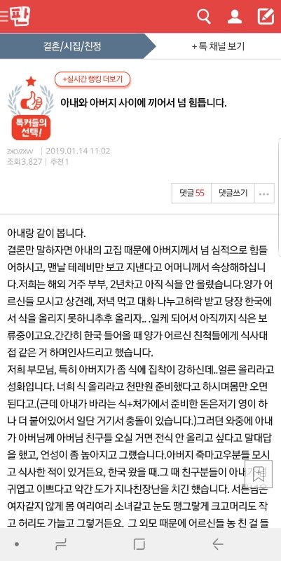 원본지킴이)아내와 아버지 사이에 끼어서 넘 힘듭니다.