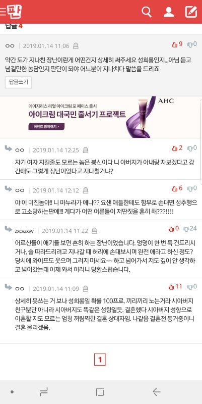 성추행도 나이 드신분들이 이뻐서 그런거라 헛소리하는 남의편...