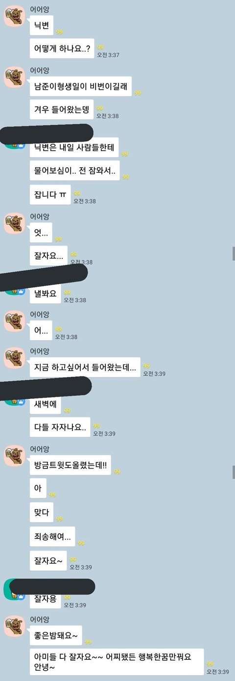 새벽엔 다들 자자나욬ㅋㅋㅋㅋㅋㅋㅋㅋㅋㅋㅋㅋㅋㅋㅋㅋㅋㅋㅋ단호한 팬도 웃기고 핵당황했을 태태도 웃기넼ㅋㅋㅋㅋㅋㅋㅋㅋㅋㅋㅋㅋ아 미치겠닼ㅋㅋㅋ