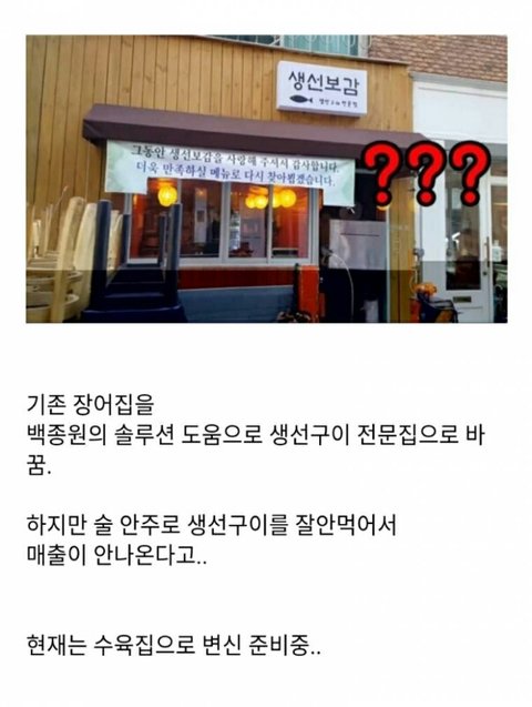 결과적으로 백종원이 늘 얘기한 메뉴 추가하지 말고, 더 성실하게 해라, 초심으로 돌아가지 말라는 것을 다 하고 있는 장어집ㅋㅋㅋㅋ 사람은 역시....