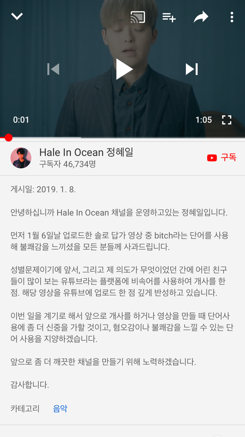 그후 사과영상을 게시했지만 혐오단어 사과만 있을뿐 제니한테 사과없음. 심지어 영상 댓글에 3일뒤에 삭제한다고 게시