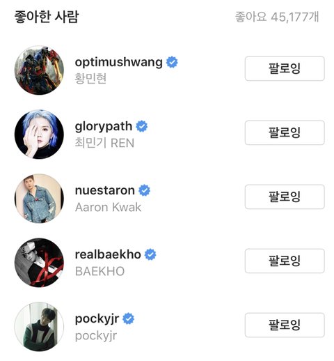 성슥 인별 좋아요에 그룹 빠이브 모여 있는 거 보니까 뉴이스트의 미래가 너무 기대돼