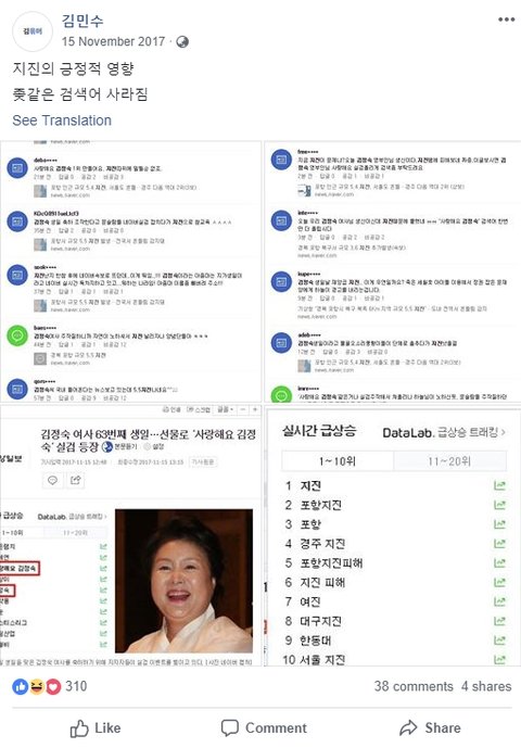 재작년에 포항에 지진났을 때는 이렇게 말했어