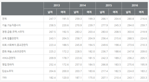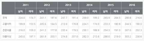 학력에 따른 직장 내 임금 성차별 통계