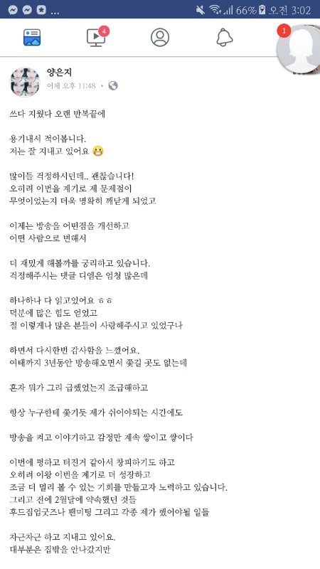 양팡 페북에 글 올렸는데