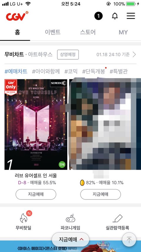 대박이당.... 새벽에 숙제하다가 잠 깨려고 잠깐 폰 하는데 깜짝 놀랐엌ㅋㅋㅋㅋㅋㅋㅋㅋ (혹시 몰라서 다른 영화는 가렸어!)