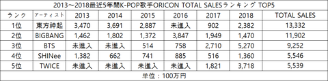최근 5년간 한국가수 오리콘 CD,DVD매출 TOP5.JPG