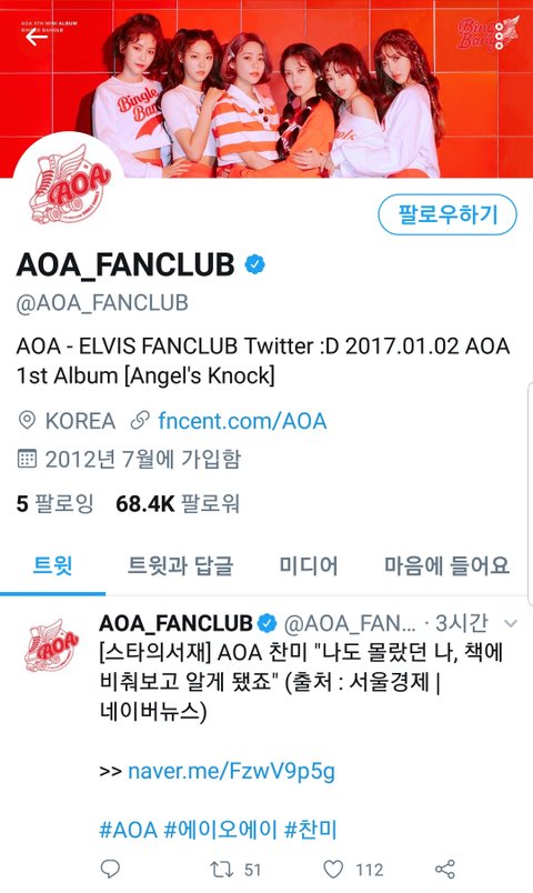 너가 본건 그냥 팬계정아냐? aoa 공식 계정은 여기있는데 뭔솔;;;