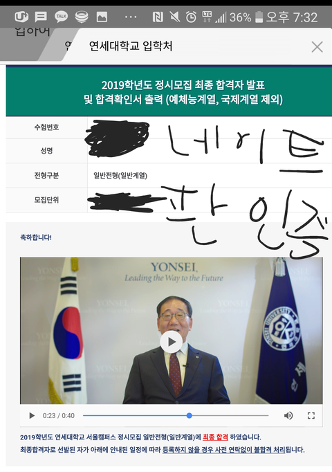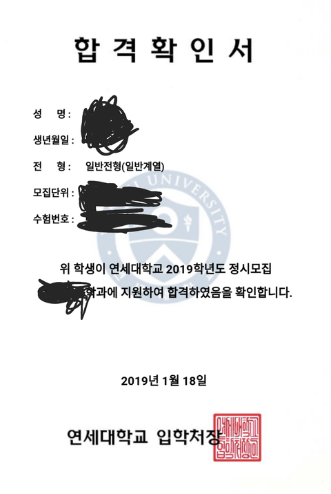 나 연세대학교 합격한 지 이제 하루하고도 5시간 정도 됐어.