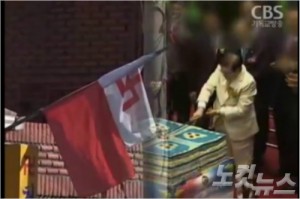 사진은 2013년 6월 CBS TV를 통해 신천지 이만희 교주의 굿판 의혹을 보도한 장면.