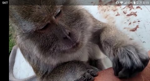 원숭이가 사람 팔을 한참동안 붙들고 피부관리해주는데 첨엔 털고르나했더니 사람팔에 하얀각질일어난거 뜯어먹음 ㅋㅋㅋ 손근데 진짜 사람손같음 손톱도있음