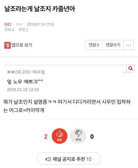 오늘 확실해진 건 백현 악개가 공지조작충이란 거 말곤 없네
