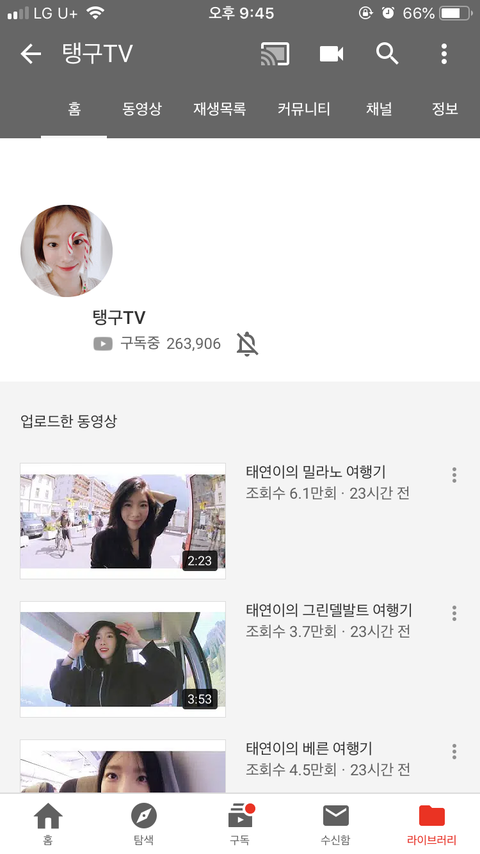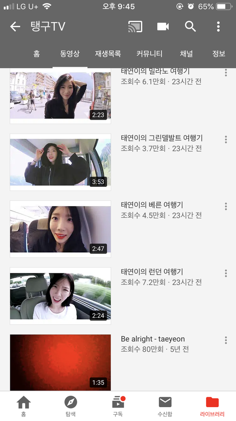 태연 유튜브 채널 생김~~!!