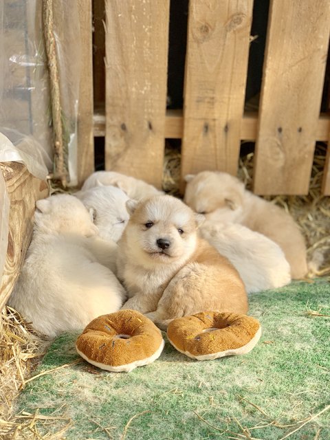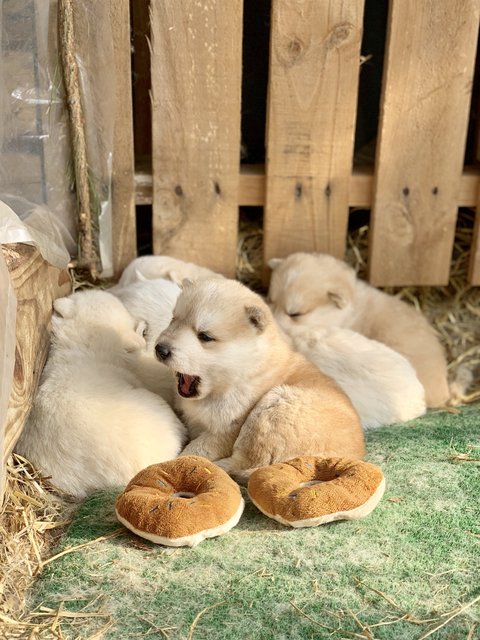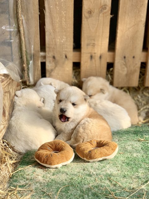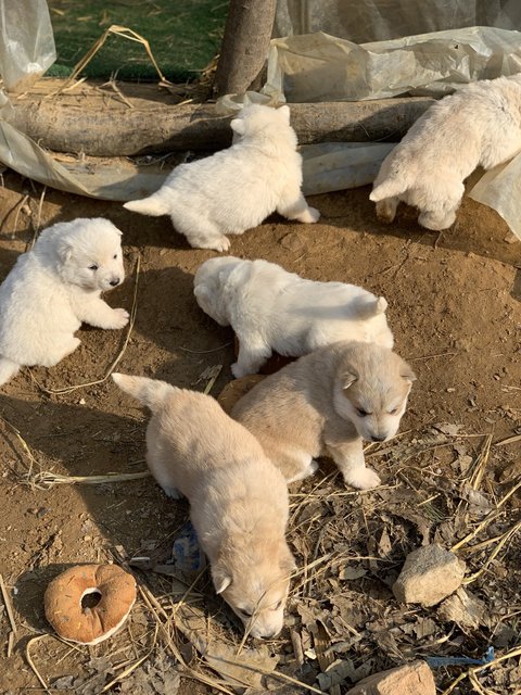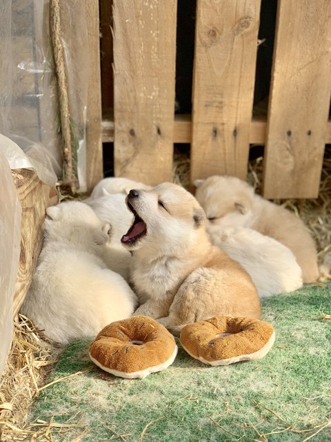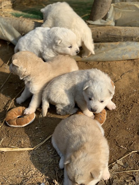 여섯마리를 낳았는데 흰둥이4마리, 누렁이2마리에요