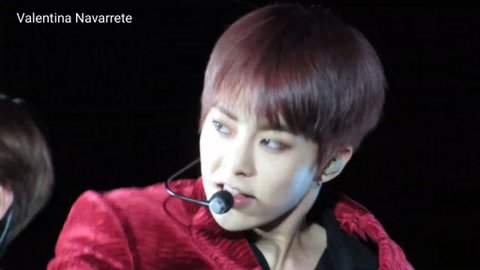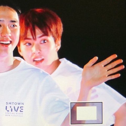 시우민 칠레 슴콘 단체샷에서 혼자