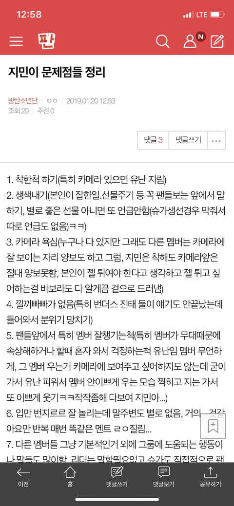 밑글 ✔️ 지민이 문제점들 정리✔️여기서봐 먹금