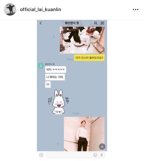 오늘 관린이가 인스타에 올린 카톡 대화 사진!!