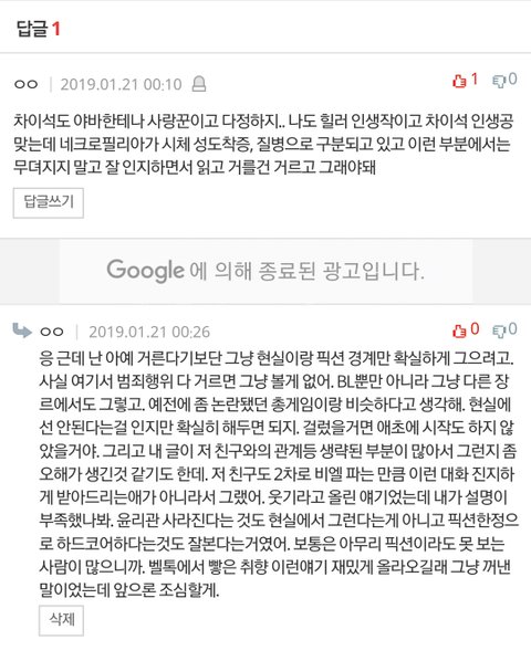 이 곳에서 하는 얘기는 애초에 bl이란 장르가 픽션이듯 전부 그걸 기본 전제하에 하에 하는 대화들이라고 생각했었는데 내가 너무 생각이 짧았었나봐.