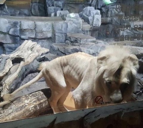 갈비뼈 앙상한 사자 사진으로 인터넷에서 논란 중인데