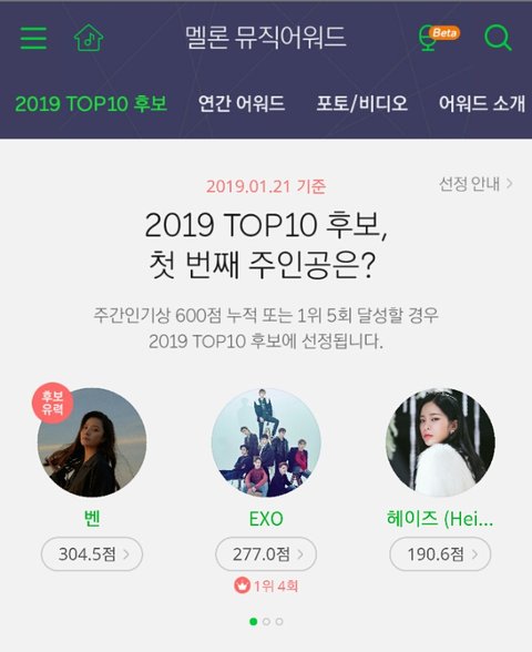 오늘 주간인기상1위하면 2019썩수top10후보들어감