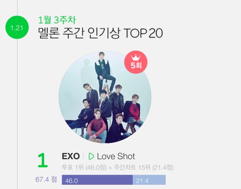 이번주 주간인기상 결과 나옴