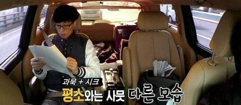 차에 타자마자 안전벨트 메고대본 찾는 유재석