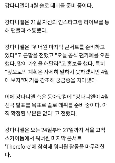 http://naver.me/GUug9bhx 기사떴어 구체적으로 확정은 아니라고하는데 강다니엘 4월 솔로 데뷔 목표로 준비중ㅠㅠㅠㅠㅠㅠㅠㅠ 나 울 어ㅠㅠㅠㅠㅠㅠㅠㅠㅠㅠㅠㅠㅠㅠㅠㅠ