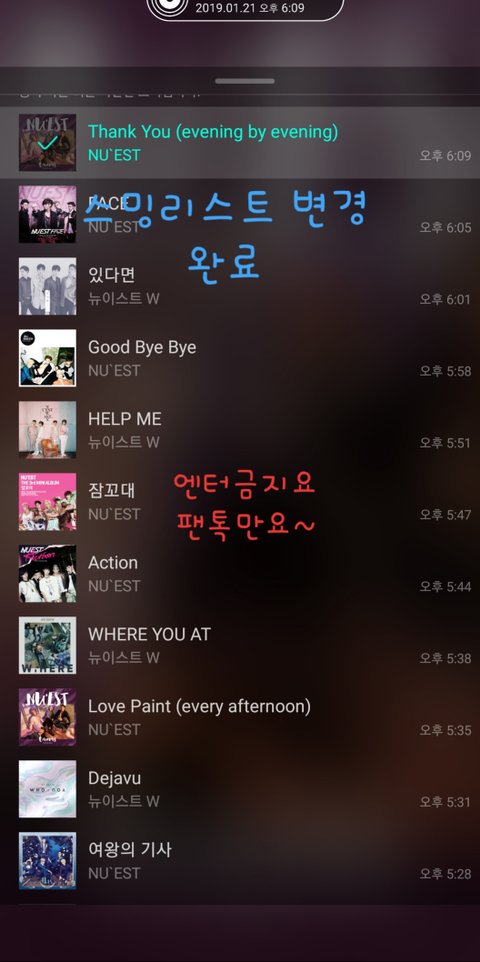 스밍리스트 변경 완료 인증