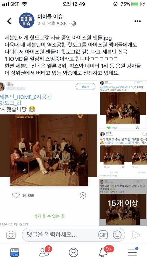 그 때 판에 악의적인 글 올라와서 욕먹었지만 세븐틴이 역조공을 엄청 많이 해줘서 배부른 상태 + 처음에 주신 분은 엄청 기분 좋아하셨음 + 핫도그 수량이 많아서 캐럿들 동의 하에 아이즈원에게 나눠줌