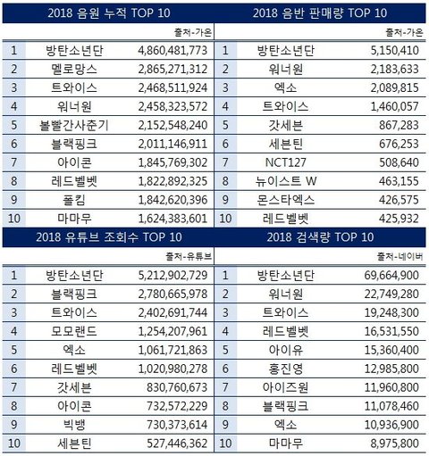 모랜 유튭 4위도 대단하고 워너원도 밸런스 좋았네