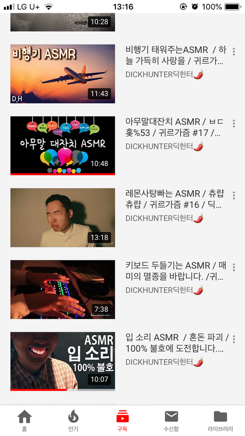 딕헌터 asmr들어봐 특별한거 없고 아무말대잔치로 떠드는거밖에 없는데 목소리 좋고 조곤조곤해서 잠 진짜 잘옴 나 웬만한 asmr 유튜버 다 들어봤는데 딕헌터꺼 듣고 10분도 안돼서 잠듬 영상길이는 좀 짧음 10분내외임