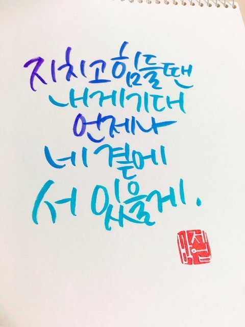 내가 캘리는 자세하게는 잘모르는데 수채화캘리? 그것도 관심있어서 해보고 있다고함
