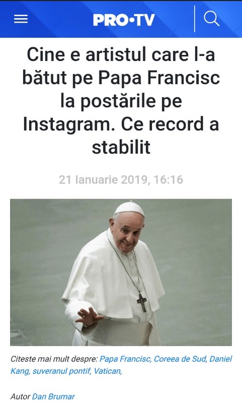 https://www.protv.ro/divertisment/cine-e-artistul-care-l-a-batut-pe-papa-francisc-la-postarile-pe-instagram-ce-record-a-stabilit.html ㄹㅇ세계일주하는데?