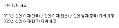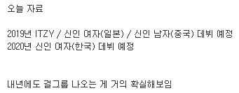 걸그룹이 또나온다고????개오반데??그리고 잇지도 그때쯤이면 데뷔1년차 밖에 안됬을텐데....너무 이르지않나???뭐이렇게 빨리해