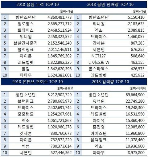 2018 트와이스 성적 통합