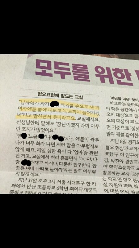 ㅋ..놀랍지도않다 솔직히 얼마나 더러울지 예상은 하고있었음 지금까지 나한테 보여졌던 미디어가 저런 초딩들한테도 그대로 싹다 노출이 되는 거니까 저럴 수밖에 없지 진짜 심각한 문제라고 생각함..그리고 5년전에 내가 초딩이었을때도 저런애들 많았음 일부러 지들끼리 후배1위 흉내내거나 휴지심에 이것저것 넣었다 뺐다 반복하면서 지들끼리 낄낄거리고 연예인 누구 가슴이 어떻고 쟤는 이렇고 저러네...이글 보니까 생각난다ㅋㅋㅋ.. 아마 여자애들 모아서 이런경험 있었냐고 물어보면 8할은 주변에 그런남자애들 꼭 있었다헐걸 전엔 몰랐는데 지금은 남자만날때 겁난단 사람들 말이 정말로 이해됨 나도 그렇게 생각하고ㅇㅇ이미 모모랜드 낸시한테 화상통화로 성행위 묘사한 초딩 봤을때 충격먹을만큼 먹어서..