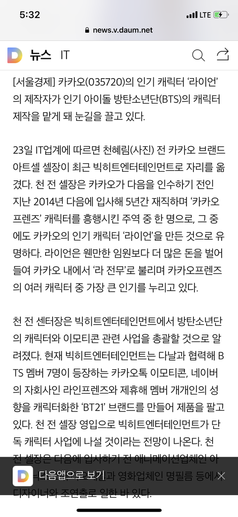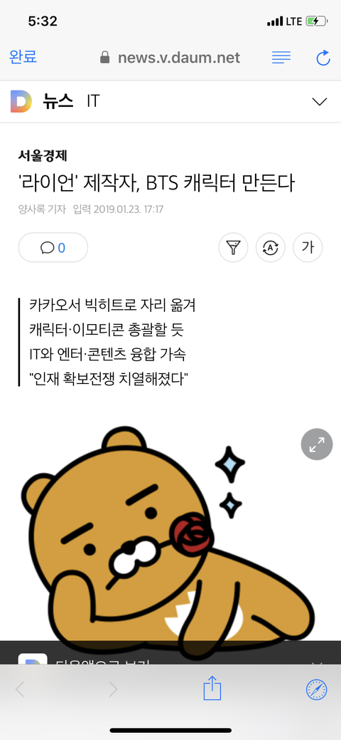 라이언 제작자 방탄 캐릭터 만든대