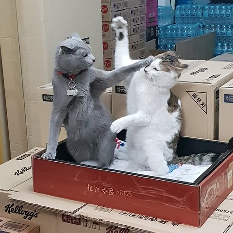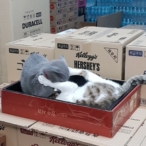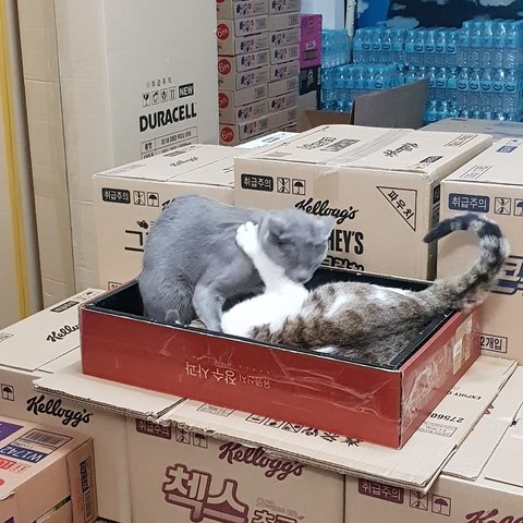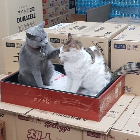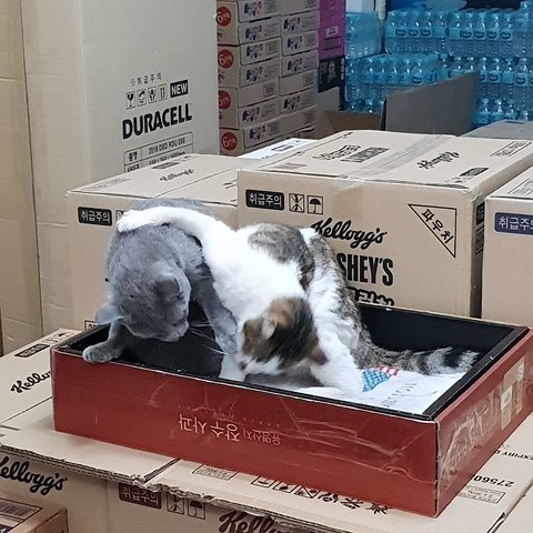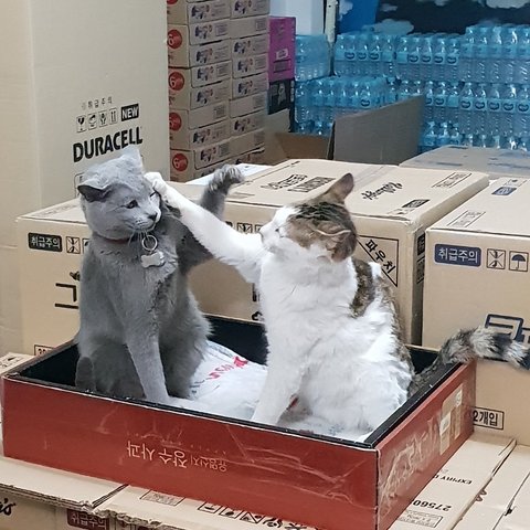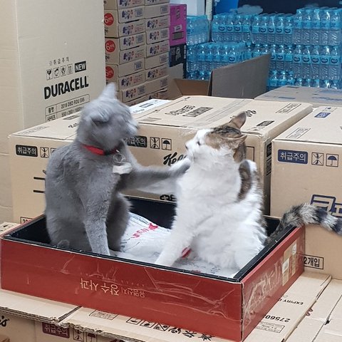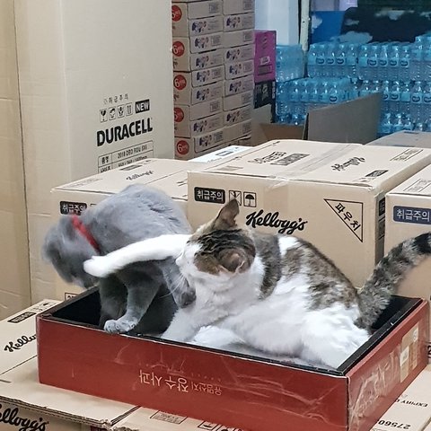 흰둥이가 콩이를 밀어내기로, 으쌰~으쌰~