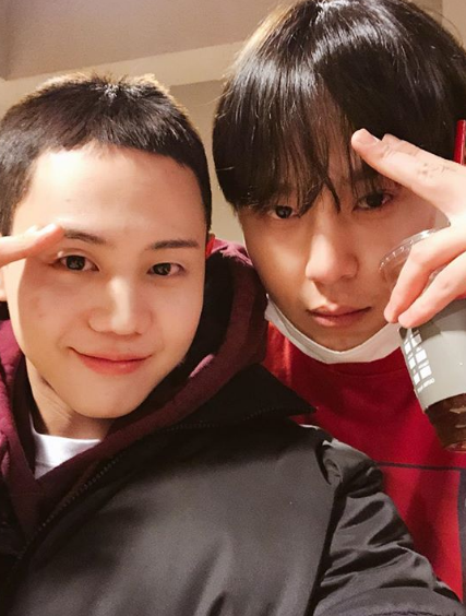 입대 전에 멤버들과 만나서 멤버들과 투샷 찍어서 올려준 요섭