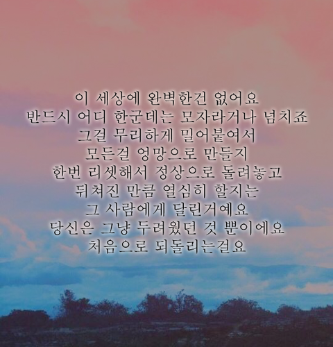 "걱정마 실망하지마 넌 열심히했으니까 잘될거야."