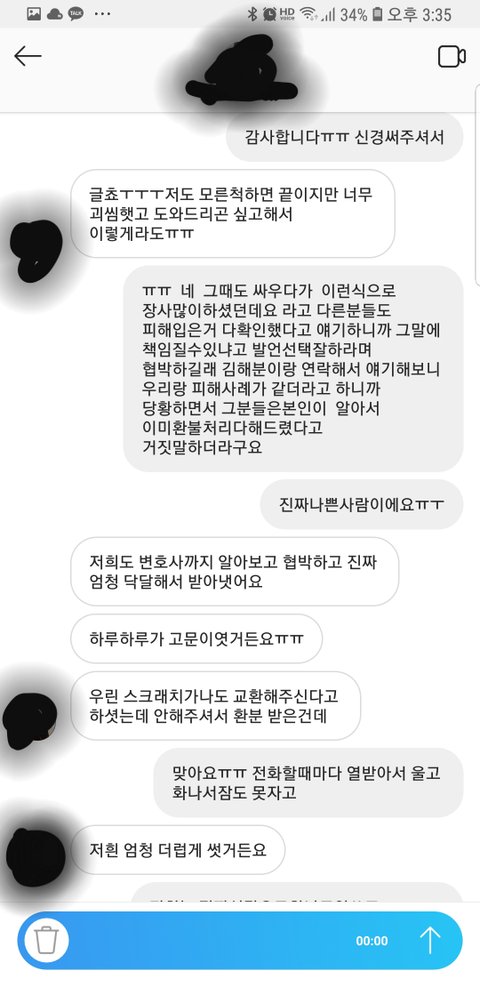 판매자특징이 통화를하며 성질을 긁어서 말려들게 만듭니다