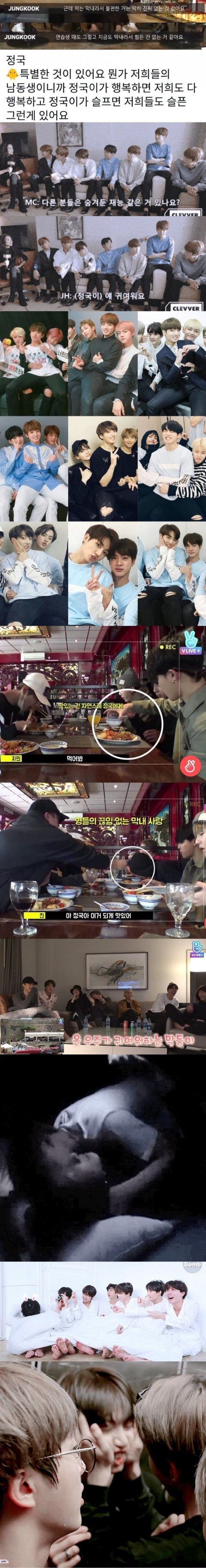 평소 형들 애정을 한몸에 받는 막내 정국이(사진만봐도 단번에 이해)