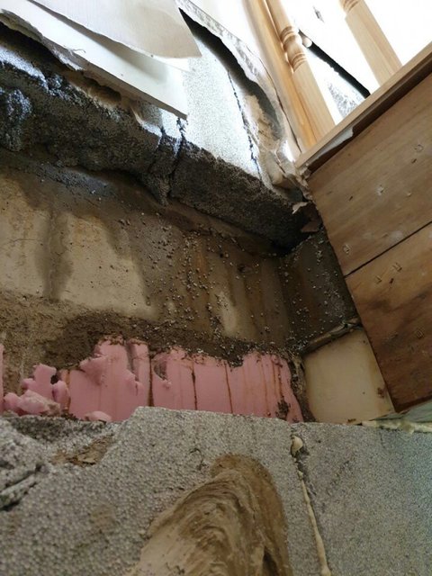 곰팡이 핀 벽에 시멘트로 덧칠하다가 딱걸림