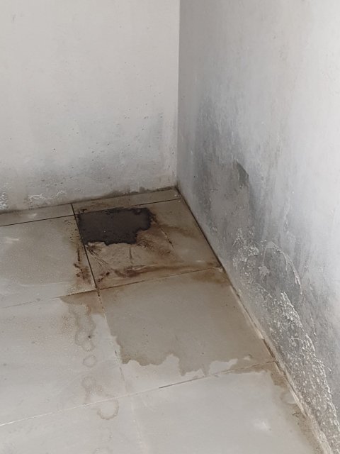 벽이 축축함 그리고 그냥 눈으로 봐도 바닥이 직각이 아님