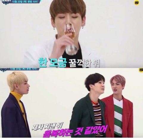 8. 피땀눈물 뮤직비디오 내용 중 음료 마시는 신이 있어서 그걸 따라하는게 있었는데