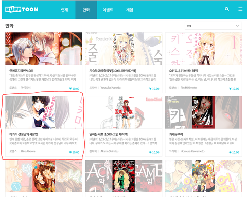 버프툰에서 마루마루 닫힌 이후에 일본만화들 가져와서 서비스하기 시작함..